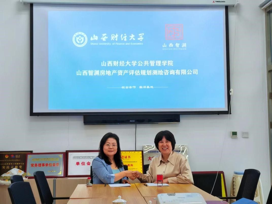 太阳成集团tyc234cc-主页院长郭淑芬、山西智渊房地产资产评估规划测绘咨询有限公司总经理杨英,签署了太阳成集团tyc234cc-主页实习实训基地协议。