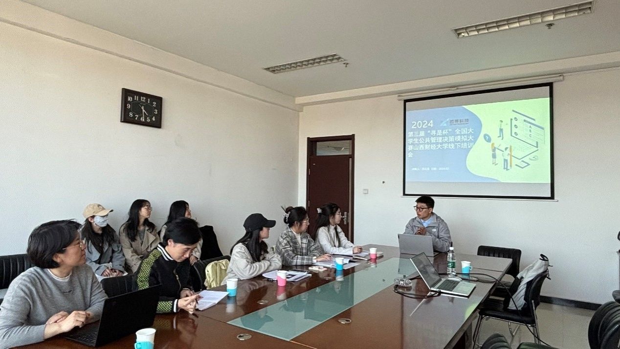 2024年3月19日下午,太阳成集团tyc234cc-主页成功举办了第三届“寻是杯”全国大学生公共管理决策模拟大赛培训。此次培训旨在提升参赛学生的决策能力和实践水平,为即将到来的大赛做好充分准备。会议邀请本次大赛的技术支持单位上海哲寻科技有限公司专家对本院师生就比赛要点和比赛平台技术运用等进行了培训。活动由学院副院长刘海燕主持,部分师生参加了培训。