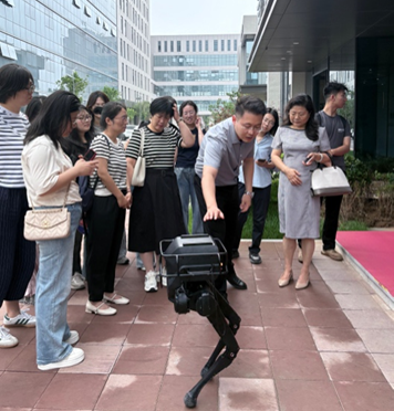 期间,山西数据流量谷邵副总经理向学院师生介绍了数据流量谷的整体概况,包括园区规划、产业布局、数据资源集聚及数字经济发展成果等,并带领参观了园区内的机器人,通过近距离观察与互动,师生们直观感受了智能机器人在操作领域的功能特性,对人工智能技术的实体化应用有了初步认识。在技术演示环节,数据流量谷团队通过模拟场景操作与效果呈现,使师生们深入理解了人工智能技术如何通过数据赋能提升效率、优化服务,切实体会到数字技术与实体经济融合发展的实践路径。