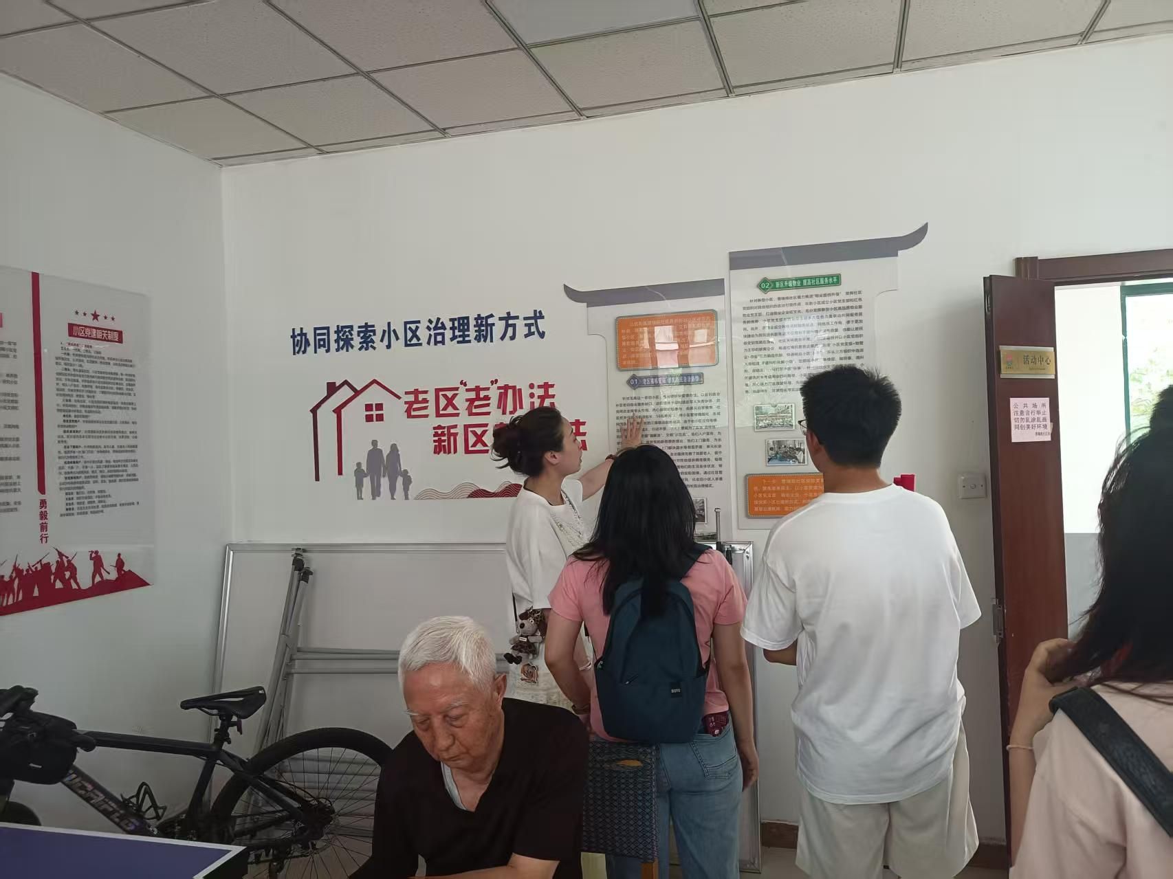 在晋瑞苑社区,师生们重点考察了党建引领下的治理模式创新。社区朱书记详细介绍了该社区新旧小区并存的独特格局,以及因地制宜的治理策略:老区推出楼栋制管理办法,将小区管理精细化,形成网格员-楼长-单元长的三级联动服务格局;在新型小区则打造“红色物业”,小区党支部联合物业不断改进完善,先后联合解决了小区电梯安全、充电隐患、地面停车、环境绿化等实际民生问题。为激发党员模范作用,社区创新“太阳花党员积分制”,党员通过服务居民积累积分并获年度表彰。社区还设立了爱心驿站,为环卫工人、外卖小哥提供服务,展现了对户外工作者的关爱。