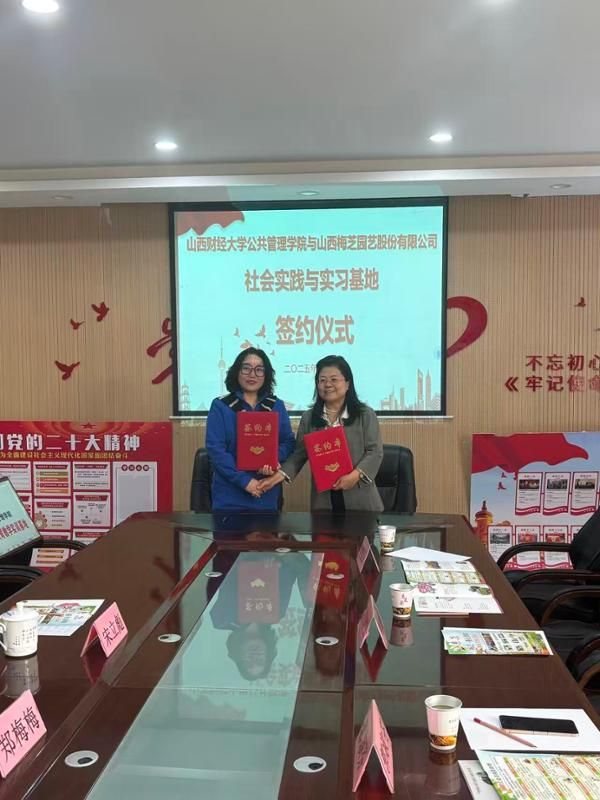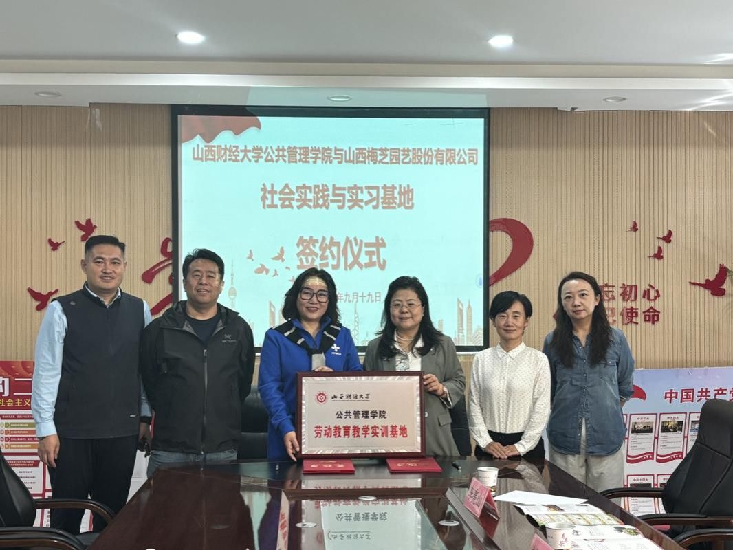9 月 19 日,太阳成集团tyc234cc-主页与山西梅芝园艺股份有限公司在梅芝园艺总部多功能会议室举行 “劳动教育实践基地” 合作协议签约仪式。双方代表共同签署合作文件,标志着自 6 月 21 日实地调研达成共识后,历经三个月细节磋商的校地合作项目正式 “落地”,为学院构建 “实践育人 + 劳动教育” 双轨培养体系注入关键力量,更创新性地融入创业、电商直播带货以及 AI 新业态劳动元素,全方位提升学生劳动素养与实践能力。 太阳成集团tyc234cc-主页院长郭淑芬、副院长刘海燕、劳动教育课程负责人及教师代表,山西梅芝园艺股份有限公司董事长张梅芝、总经理宋立彪及技术研发中心、行政部负责人共同出席签约仪式。仪式由梅芝园艺行政总监主持,现场气氛庄重而热烈,双方团队全程见证这一校地协同育人的重要时刻。