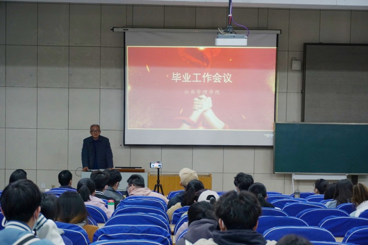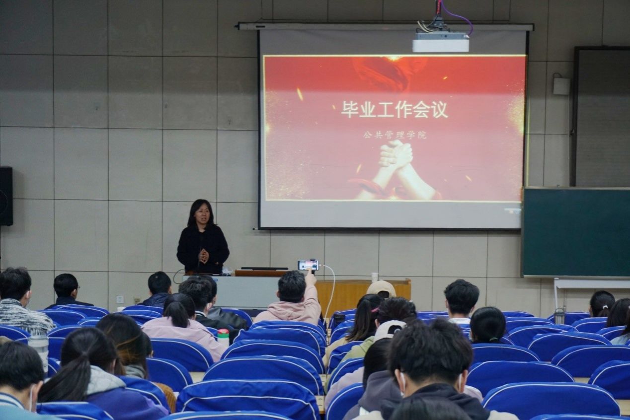 会议聚焦毕业生学业、考研和就业工作,对2019级本科生进行了全面指导。刘海燕老师详细解读了毕业实习和毕业论文(设计)等教学环节的安排,要求同学们严肃对待这两个环节的工作,积极参加实习实践,加深对社会的认识,提高学业和职业能力;要注重学术规范,提高逻辑思维和写作能力,培养科研意识和学科素养。冯小俊老师向全体学生全面介绍了全国公共管理学科总体情况、博士点硕士点分布、我校学科发展历史、特色和优势,以详实的数据为支撑,阐释了近三年来我院四个硕士专业报录比和生源结构,鼓励同学们坚定信心、明确目标,积极备战、实现梦想。梁兴凯老师分析了国际国内经济形势和近年来应届毕业生供求关系变化,发布了近三年来我院学生考研和就业的相关信息,希望同学们能够审时度势、合理定位,努力做到忠于理想、认清现实、脚踏实地。李霞老师安排部署了近期的学生工作和重点事项。