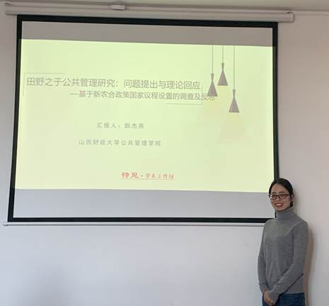 郎杰燕的分享逻辑清晰、细腻严谨,为我们厘清了公共管理研究中应该从哪些方面、哪个层次运用田野调查。参会的各位老师分别从新型农村合作医疗政策议程的类型、问题研究中分析框架的合理搭建、混合研究方法的优秀运用范例、田野调查中访谈对象的特质等方面进行了深入交流。