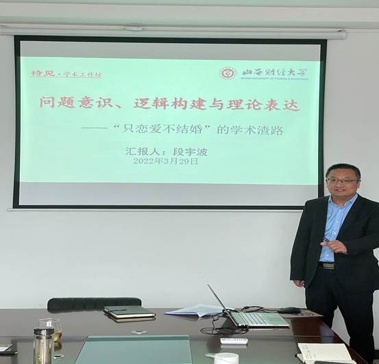 3月29日,太阳成集团tyc234cc-主页“待见·学术工作坊”举办第九期学术研讨活动。太阳成集团tyc234cc-主页副院长段宇波博士作了题为“问题意识、逻辑构建与理论表达——‘只恋爱不结婚’的学术渣路”的学术分享。活动由行政管理系主任刘海燕博士主持。