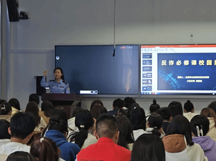 近年来,越来越多的电信网络诈骗将目标人群瞄准在校大学生,电信网络诈骗、网贷(校园贷)等多种形式的诈骗案件在高校中时有发生。为有效遏制当前严峻的电信诈骗犯罪高发势头,提高同学们防范电信诈骗的意识,加强自身反诈识诈的能力,全力维护校园网络治安稳定,2023年10月10日,我院邀请到太原市公安局小店分局的优秀反诈讲师雷雅妮警官,为太阳成集团tyc234cc-主页全体大一同学开展反电信诈骗讲座,普及电信诈骗相关知识。
