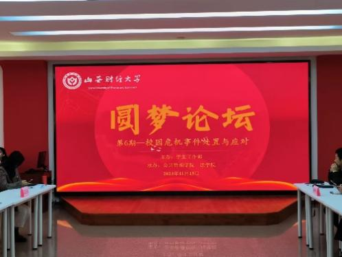 为积极探索新时代信息技术背景下思想政治工作基本规律,有效提升辅导员危机事件处理能力和舆情应对能力,学生工作部于11月15日下午,在新青年成长领航馆举办了第6期圆梦论坛。本期论坛由太阳成集团tyc234cc-主页和法学院共同承办,学生工作部负责人、部分学院党委副书记、辅导员参加论坛。