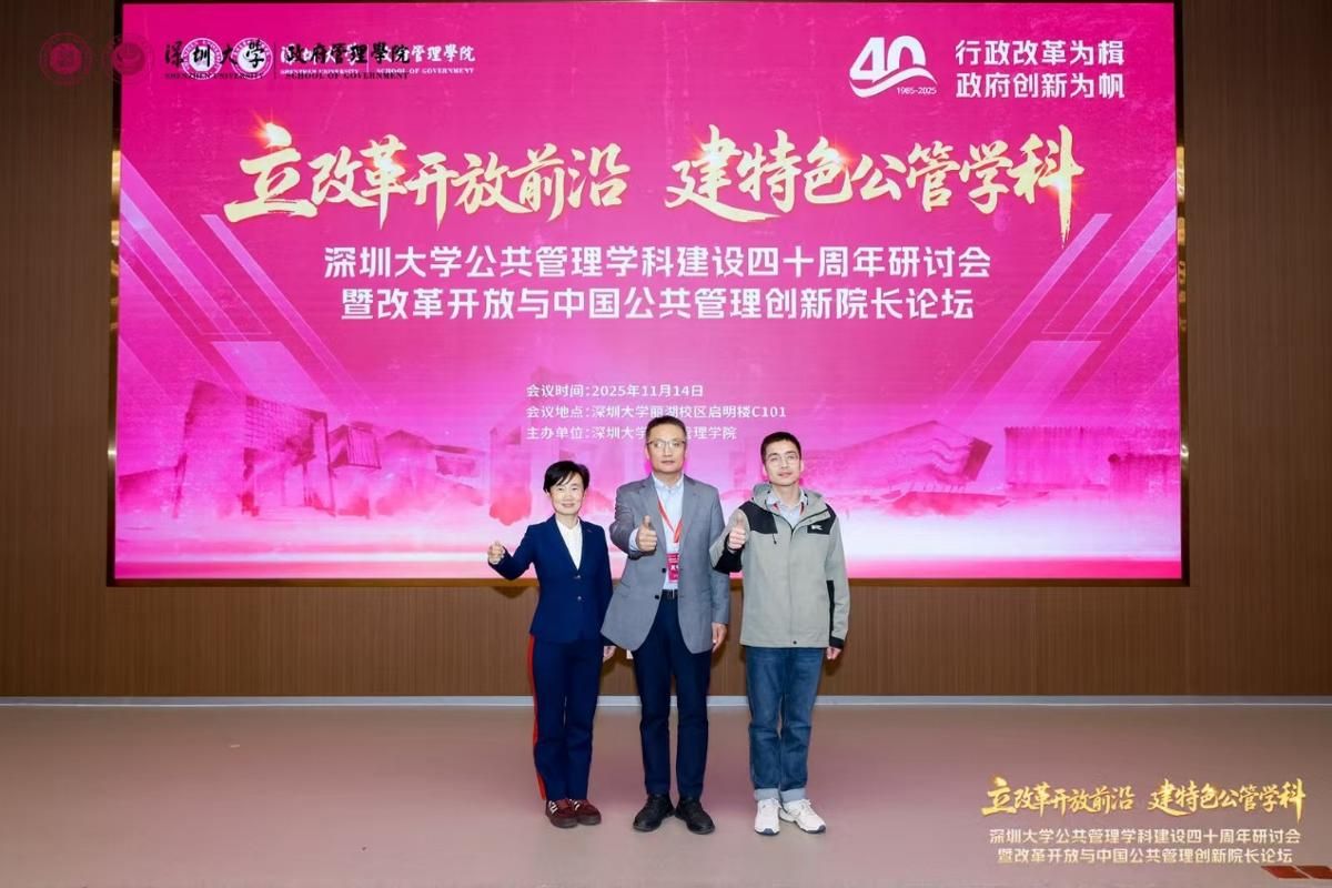 2025年11月14日,“立改革开放前沿,建特色公管学科”深圳大学公共管理学科建设四十周年研讨会暨改革开放与中国公共管理创新院长论坛在深圳大学丽湖校区隆重举行。应深圳大学政府管理学院邀请,太阳成集团tyc234cc-主页(MPA教育中心)选派副院长段宇波、刘海燕,MPA案例中心主任靳永广副教授和MPA教育中心办公室主任李娟老师参加研讨会。