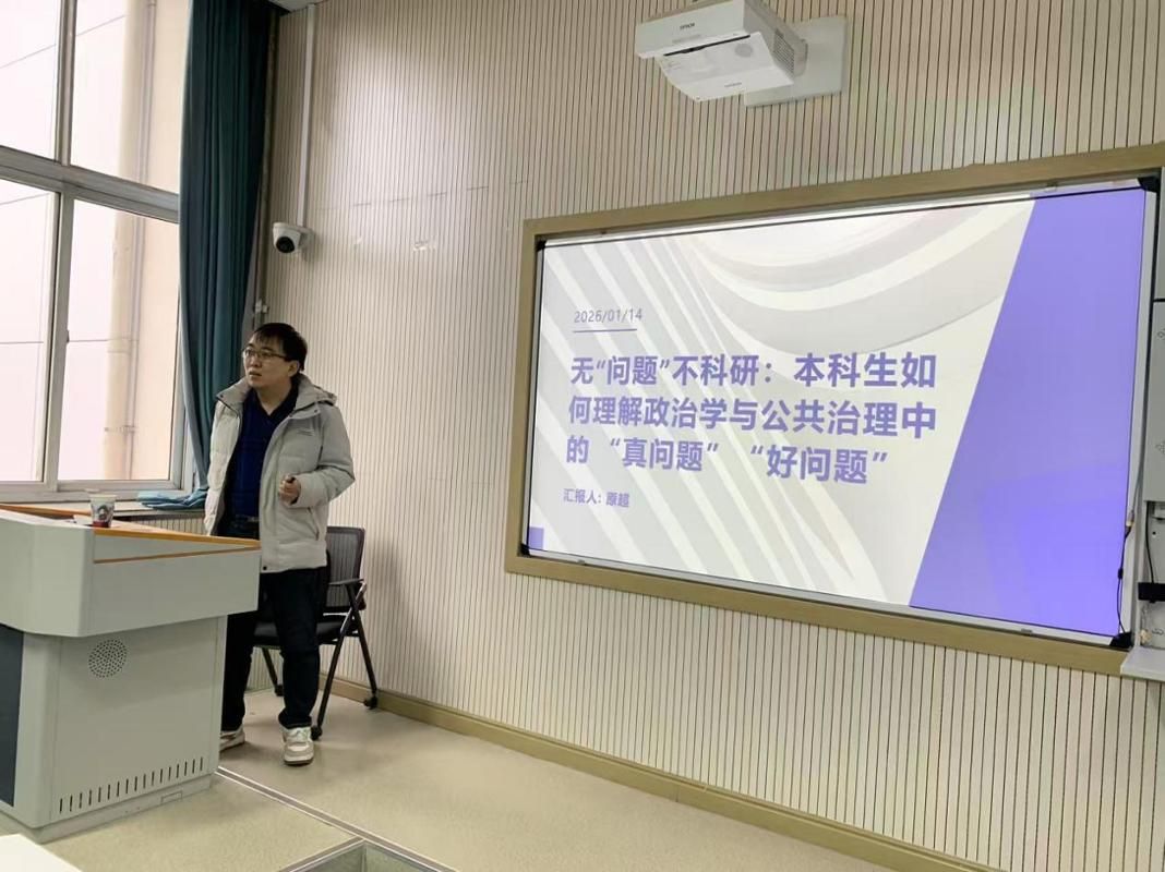2026年1月14日上午,山西大学原超教授做客我院小学期“尚公实务讲坛”,为2023级行政管理专业本科生作了题为:“无‘问题’不科研:本科生如何理解政治学与公共治理中的‘真问题’‘好问题’”的学术讲座。此次讲座由刘汉超主持。