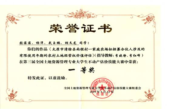 学院以“三全育人”综合改革为抓手,强化育人体系建设,人才培养质量显著提升。在巩固原有教学实践基地的基础上,学院分别与太原市社会(儿童)福利院、文水县行政审批服务中心、博康财税集团、碧桂园控股有限公司山西区域、太原机场出入境检验检疫局、山西智渊房地产估价有限公司、太原人才大市场等单位签订实践教学合作协议,每年安排部分学生参加实习实训。紧紧依托公共管理学科优势与特色,将人才培养深度融入教学科研及第二课堂育人的全过程,《第二轮土地承包到期后再延长30年政策对农户土地流转意愿影响分析——以山西省文水县为例》成功获得国家级创新创业项目立项;《太原市清徐县南城村一家庭农场拟招募合伙人涉及的有限使用年期的农村土地经营权价值评估》荣获第三届全国大学生土地资源管理专业不动产估价技能大赛一等奖;连续两年,学院学生在全国大学生土地国情调查大赛中荣获三等奖;依托学院立项的国家自然科学基金项目《黄土区大型露天煤矿复垦高压实土壤有机碳恢复机理研究》,课题组教师组织学生赴山西平朔露天煤矿开展复垦生态系统土壤、植被特征实地调查,对实践育人新机制进行积极探索;研究生创业计划类作品《幸福家园—社区居家养老》荣获“创青春”山西省兴晋挑战杯创业大赛银奖。