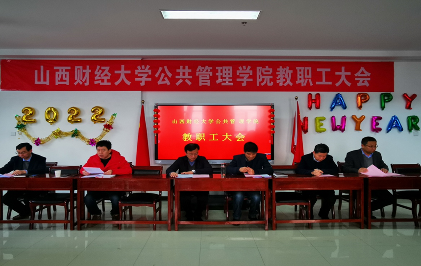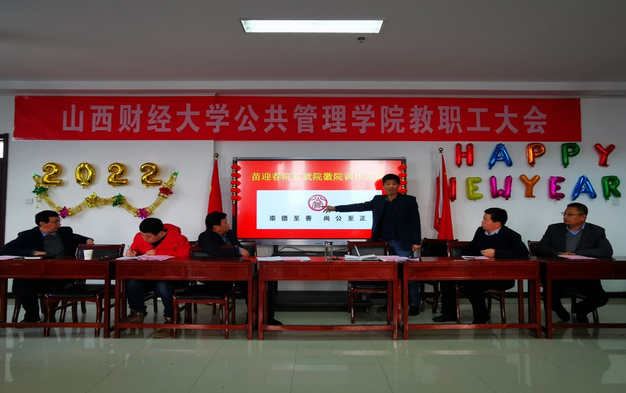 会上,苗迎春围绕人才培养、师资队伍、科学研究与服务社会、开放办学与改革发展、党建思政与安全稳定、服务效率与治理效能等方面对2021年工作做了总结;就2022年学院重点工作做了安排;通报了2021年年度考核、绩效分配等相关事项;对学院的院徽设计方案和院训进行了阐释说明。梁兴凯就《太阳成集团tyc234cc-主页教职工关怀“五必访”制度(讨论稿)》做了说明。院工会主席段宇波就2021年工会工作和会费使用情况做了说明。