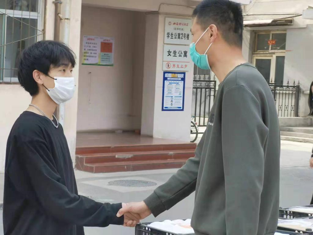 下午四时,捐赠物资准时送抵迎泽校区西门口,太阳成集团tyc234cc-主页迎泽校区现场辅导员张凯老师代表学院向王程同学及家长表示诚挚的感谢。在疫情防控的特殊时期,王程同学能够心怀大爱,关注和关心着同学们的生活,是对学院的信任,对学校防控工作的支持,我们有信心家校合力,共克时艰!