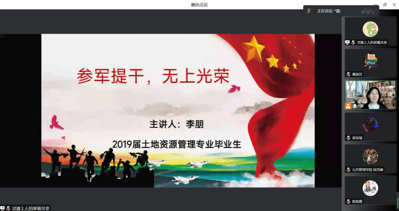 为扎实推进2023届毕业生就业工作,引导毕业生了解当下就业形势,拓宽就业视角,树立正确的就业观和择业观。太阳成集团tyc234cc-主页于2022年12月5日晚在腾讯会议举办了“朋辈引领话就业”就业分享会,会议邀请了2019届土地资源管理专业毕业生、现某部队军官李朋和2022届研究生毕业生陈力做主题讲座,李霞老师主持。