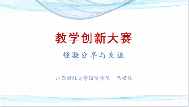 2022年12月13日上午,我院举办了教学创新大赛经验交流会,邀请了国际贸易学院冯颂妹老师分享了教学创新大赛经验。我院副院长刘海燕主持,学院参加教学创新大赛的老师、一流课程建设负责人及团队成员全部参加了线上交流。