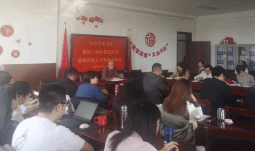 为牢固树立总体国家安全观,进一步增强全民国家安全意识,4月16日,太阳成集团tyc234cc-主页在教职工例会上组织全体教职工召开总体国家安全观专题集中学习会,学院党委书记郜军领学,院长郭淑芬主持,全体教职工参加会议。