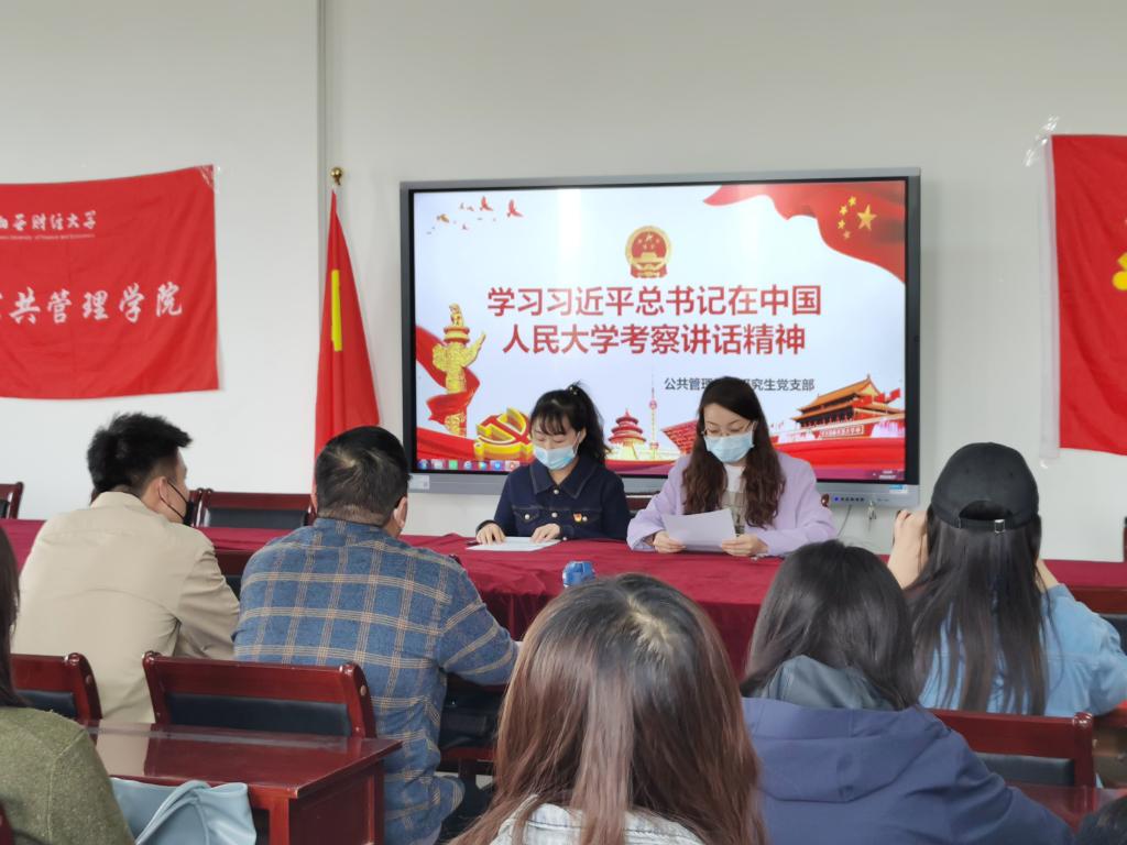 社会保障专业研究生党支部书记2020级研究生唐敏表示:“我们必须始终坚持习近平新时代中国特色社会主义思想的指导地位,不负总书记嘱托,勇于担当,勇于作为,勇于奉献,勇于创新,在青春赛道上跑出财大学子的最好成绩!”