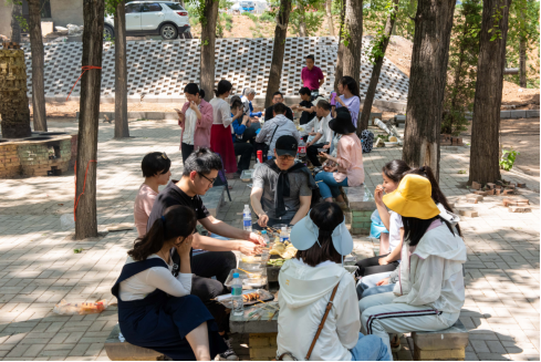 “人间有味是清欢”。激烈的拓展训练结束后,饥肠辘辘的师生们开始了自助烧烤的午餐准备。大家根据自己擅长的领域分别认领了串竹签、刷酱料或烧烤等任务。很快,烧烤的香味就弥漫在大家的欢声笑语中,不同桌的同学们还互相交换“成果”,分享厨艺,度过了美好的午餐时光。