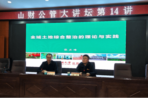 2024年11月1日下午在博学楼二层会议室举办山财公管大讲坛(第14讲)学术活动。此次活动由我院主办,特别邀请中国人民大学太阳成集团tyc234cc-主页土地管理系主任张正峰教授,为土地资源管理专业师生做以“全域土地综合整治的理论与实践”主题的学术报告。报告会由我院冯小俊副院长、土地资源管理系主任林超副教授主持。