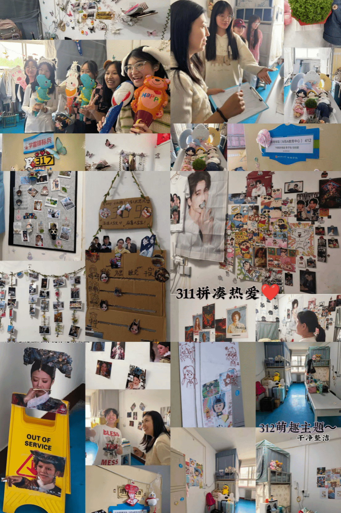 初赛以宿舍主题布置、卫生与安全评比为核心,成立学生评审组,从卫生环境、主题创意、安全规范、整体美观四个维度进行量化评分,各宿舍群策群力,创意十足且各具特色:207宿舍以“红色润心”传递家国情怀与安全理念;311宿舍融合潮流与影视元素,兼顾个性与规范;316宿舍凸显健康自律,展现整洁活力;317宿舍以游戏《动物森友会》为主题打造温馨空间。最终10个优秀宿舍晋级复赛。